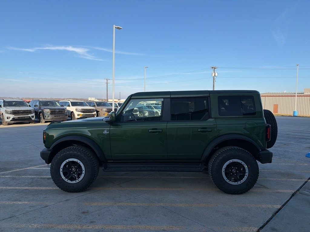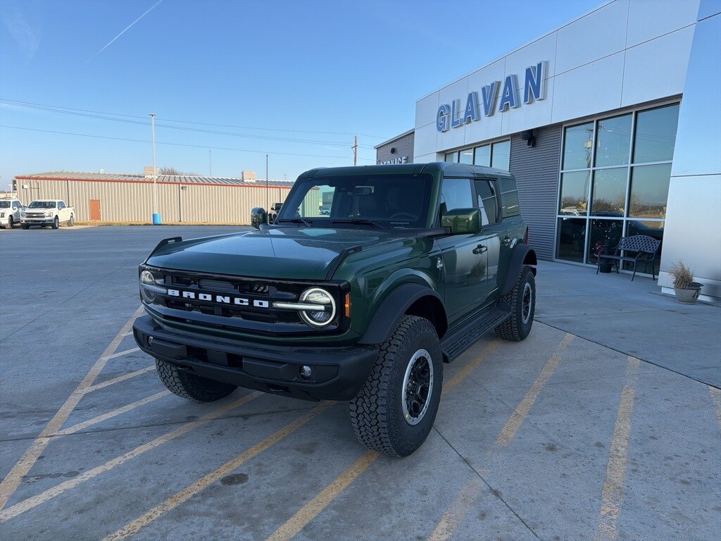 Eruption Green Metallic 2025 Ford Bronco Outer Banks 4WD 10-Speed Automatic 2.3L EcoBoost I-4 4.7 Final Drive Ratio, Equipment Group 312A Mid Package, High Clearance Fender Flares, High Clearance Suspension, Position-Sensitive Bilstein Shock Absorbers, Sasquatch Package, Wheels: 17" Carbonized Gray Painted Aluminum.