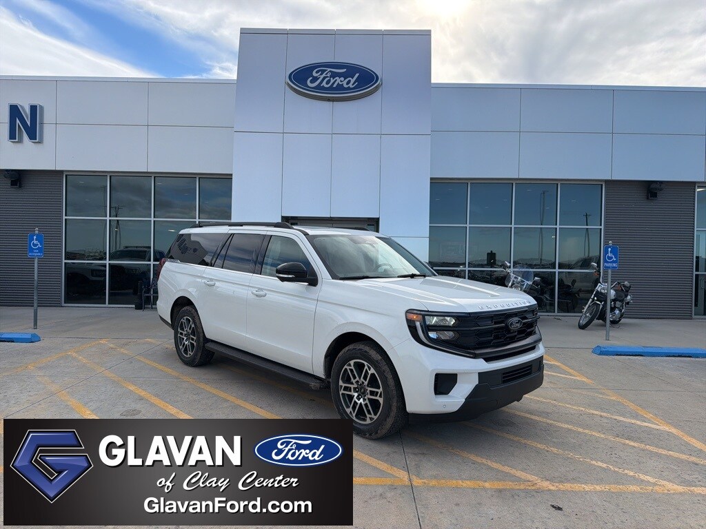 Star White Metallic Tri-Coat 2025 Ford Expedition Max Active 4WD 10-Speed Automatic EcoBoost 3.5L V6 GTDi DOHC 24V Twin Turbocharged 110V/400W AC Power Outlet, 26mm Engine Radiator, 2nd Row Power-Folding 40/20/40 ActiveX Bench Seat, 360-Degree Zone Lighting, 3rd Row Flexible Seating, 3rd Row Vinyl Seats, 4-Door Intelligent Access (Lock/Unlock), ActiveX Front Heated Captain's Chairs, BlueCruise Equipped, Equipment Group 202A High Package, Flex Powered Console, Ford Split Gate, Front Side Laminated Glass, Heated Steering Wheel, Heavy-Duty Trailer Tow, Integrated Trailer Brake Control, Memory Driver Seat, Power Panoramic Vista Roof w/Power Sunshade, Power Tilt/Telescopic Steering Wheel w/Memory, Power-Folding Sideview Mirrors w/Autofold, Rain Sensing Wipers, SecuriCode Keyless Entry Keypad, Universal Garage Door Opener, USB Ports, Wheels: 20" Carbonized Gray Bright Machined Aluminum, Wireless Charging Pad.