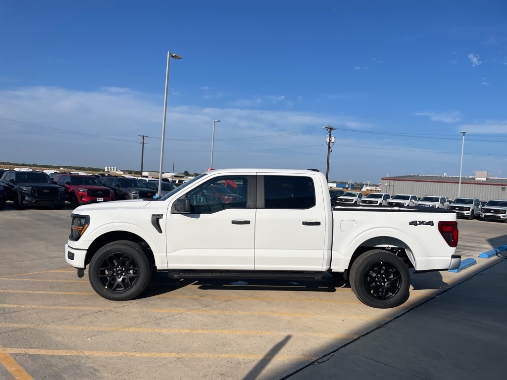 Oxford White 2025 Ford F-150 STX 4WD 10-Speed Automatic 2.7L V6 EcoBoost 20" Wheels, 400W Cab & Bed Outlets, 6" Black Running Boards, Black Exterior Badging, Console Worksurface, Equipment Group 200A Mid, Gray Box Side Decal, LED Fog Lamps w/LED Cornering Lamp, Mobile Office Package, STX Black Appearance Package, Unique Sport Cloth 40/Console/40 Front-Seats, Wheels: 20" Dark Gray w/Machined Aluminum, Wheels: 20" Gloss Black.
