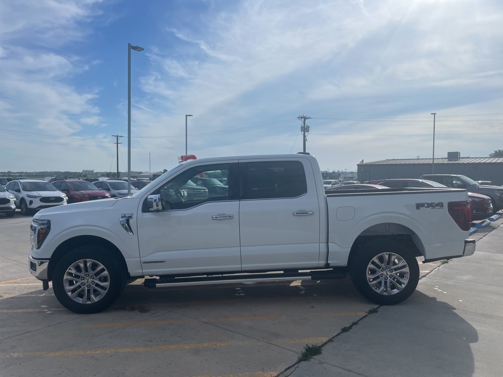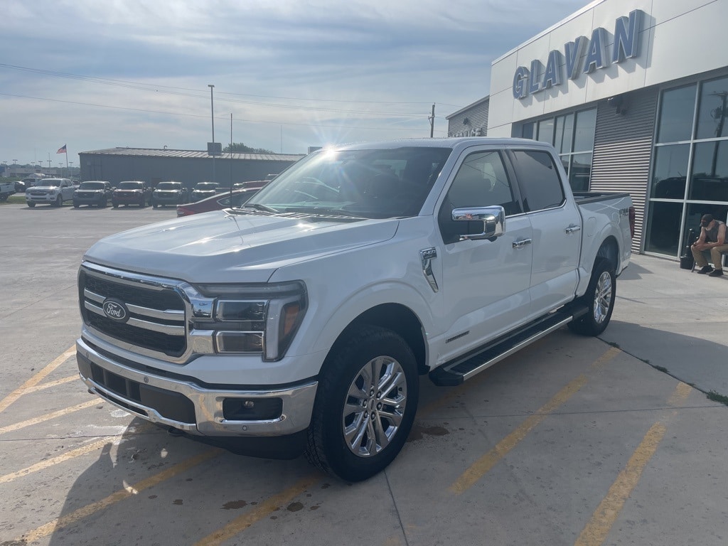 Star White Metallic Tri-Coat 2025 Ford F-150 Lariat 4WD 10-Speed Automatic 3.5L PowerBoost Full-Hybrid V6 F-150 Lariat, 4D SuperCrew, 3.5L PowerBoost Full-Hybrid V6, 4WD, 2nd Row Heated Seats, 4x4 FX4 Off-Road Bodyside Decal, Ambient Lighting - Ice Blue Color Only, Console Worksurface, Electronic Locking w/3.31 Axle Ratio, Equipment Group 502A High, FX4 Off-Road Package, Heads-Up Display, Hill Descent Control, Illuminated Driver & Passenger Visors, Mobile Office Package, Monotube Rear Shocks, Off-Road Tuned Front Shock Absorbers, Partitioned Lockable Rear Storage, Power-Sliding Rear Window, Radio: B&O Unleashed Sound System by Bang & Olufsen, Rock Crawl Mode, Tough Bed Spray-In Bedliner, Tray Style Floor Liner w/o Carpet Mats, Wheels: 20" Chrome-Like PVD, Wireless Charging.