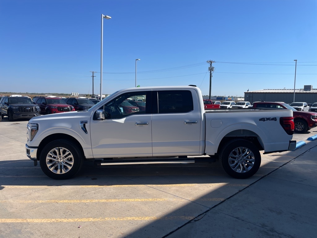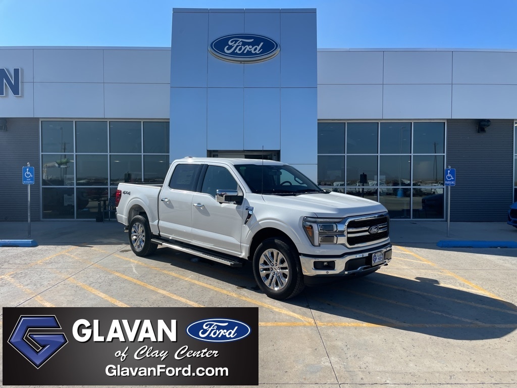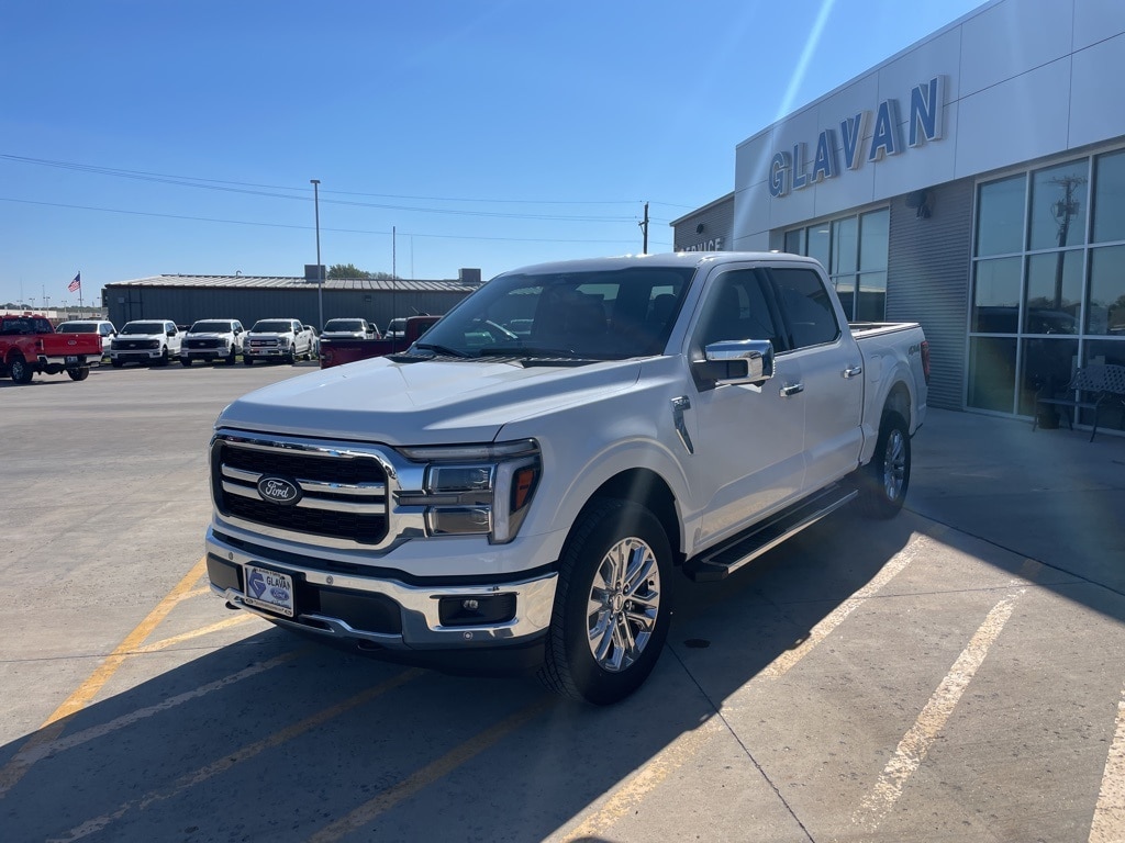 White 2025 Ford F-150 Lariat 4WD 10-Speed Automatic 3.5L V6 EcoBoost 2nd Row Heated Seats, 4 Pickup Box Tie-Down Plates, Ambient Lighting - Ice Blue Color Only, Bed Utility Package, Console Worksurface, Equipment Group 502A High, Heads-Up Display, Illuminated Driver & Passenger Visors, Integrated Trailer Brake Controller, LED Box Lighting, Mobile Office Package, Partitioned Lockable Rear Storage, Power Tailgate, Power-Sliding Rear Window, Pro Access Tailgate, Radio: B&O Unleashed Sound System by Bang & Olufsen, Tow/Haul Package, Wheels: 20" Chrome-Like PVD, Wireless Charging.