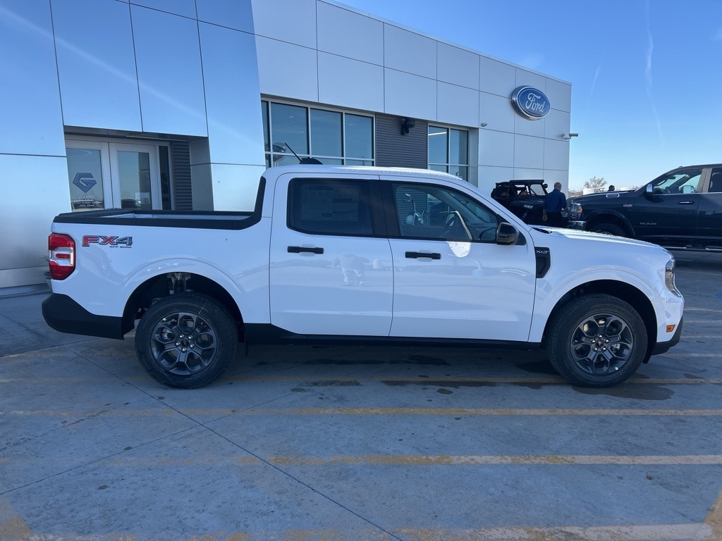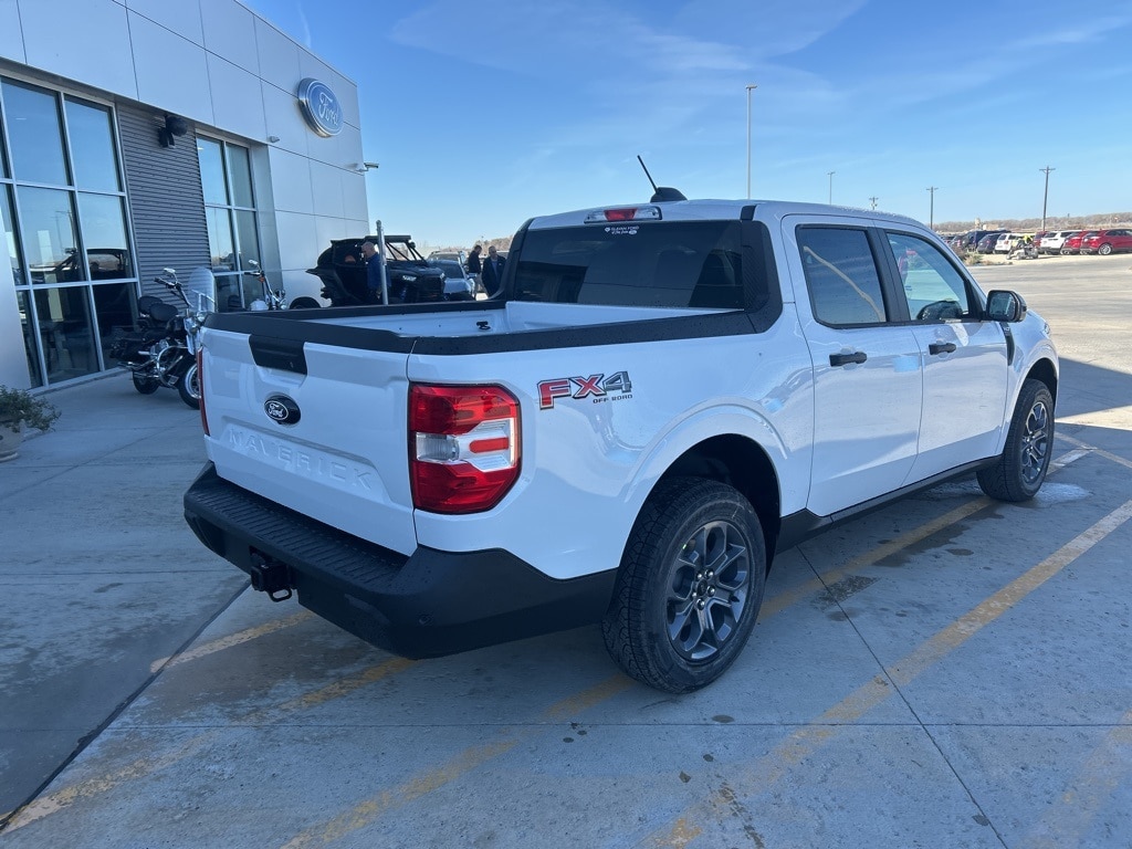 Oxford White 2025 Ford Maverick XLT AWD 8-Speed Automatic EcoBoost 2.0L I4 GTDi DOHC Turbocharged VCT 400W Inverter w/USB Console Rear, 4K Tow Package, Auto High Beams, BLIS w/Cross-Traffic Alert, Cross Traffic Brake Assist, Evasive Steering Assist, Exposed Front Tow Hooks, Ford Co-Pilot360 1.0, FX4 Off-Road Package, Heated Mirror w/Painted Black Skull Caps, Heated Seats, Higher Capacity Radiator, Hill Descent Control, Intersection Assist, Lane-Keeping System, LED Box Lighting, Performance Suspension, Power Glass Manual-Folding Mirrors, Pre-Collision Assist w/Automatic Emergency Braking, Rear Parking Sensors, Rear-View Camera, Remote Start System, Soft Vinyl Wrapped Heated Steering Wheel, Trailer Brake Controller, Trailer Hitch (Class III) 2" Receiver, Transmission Oil Cooler, Upgraded Cooling Fan, Wheels: 17" Unique Ebony Painted Aluminum, XLT Luxury Package.