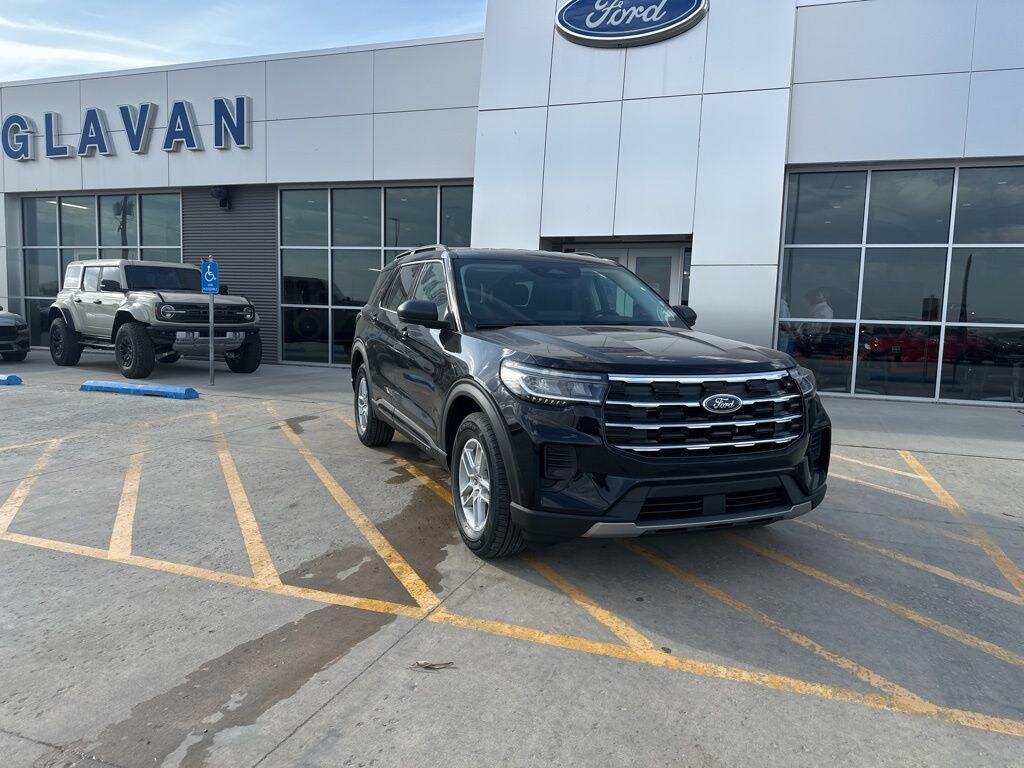 Agate Black Metallic 2026 Ford Explorer Active 4WD 10-Speed Automatic 2.3L EcoBoost I-4 AM/FM Stereo, Equipment Group 200A Standard Package, Remote keyless entry, Steering wheel mounted audio controls, Unique Cloth Heated Captain's Chairs, Wheels: 18" Sparkle Silver-Painted Aluminum.