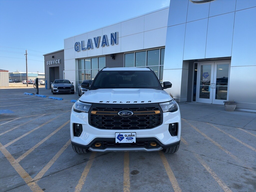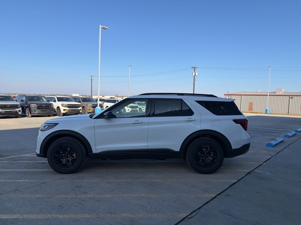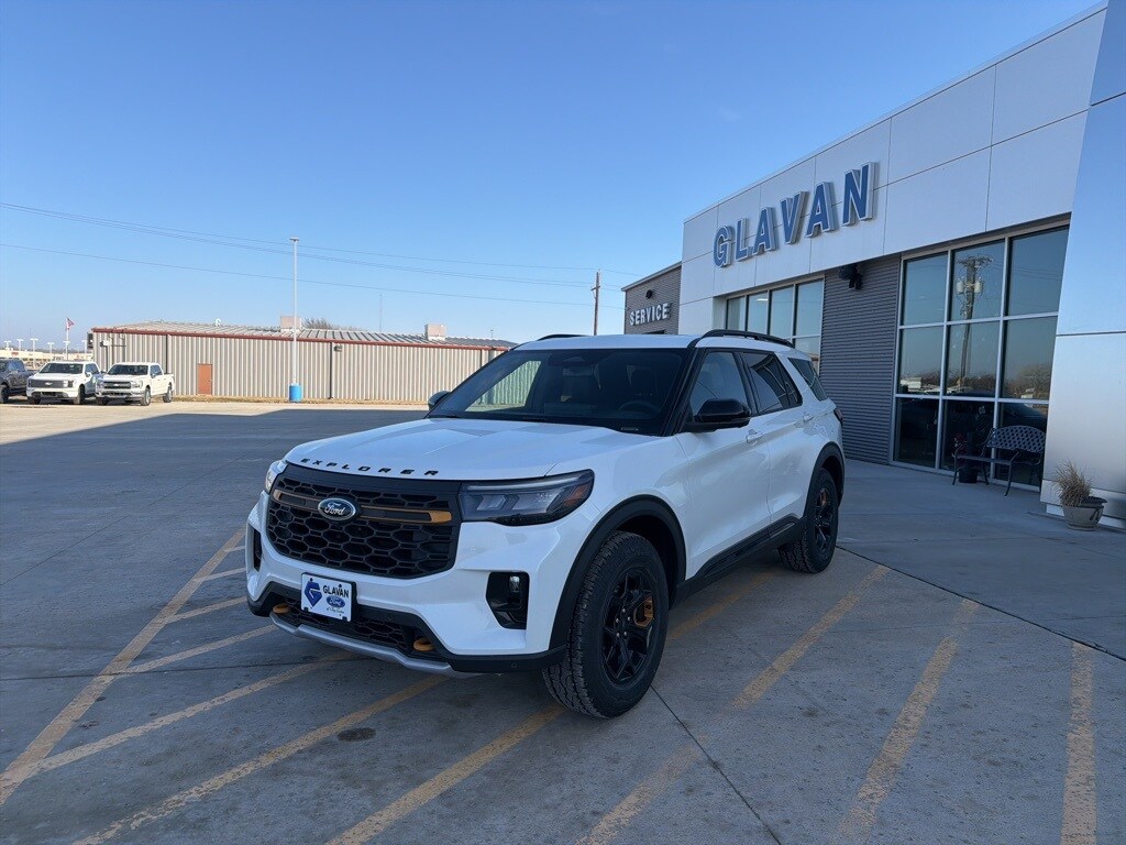 White 2026 Ford Explorer Tremor 4WD 10-Speed Automatic 3.0L EcoBoost V6 3rd Row PowerFold Seats, Ambient Lighting, Memory Driver's Seat, Multicontour Seats with Front Active Motion, Panoramic Fixed Glass Roof with Power Shade, Power-Folding with Autofold Side Mirrors, Radio: B&O Sound System by Bang & Olufsen, Rain-Sensing Wipers (front Only), Tremor Ultimate Package.