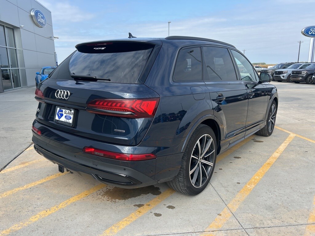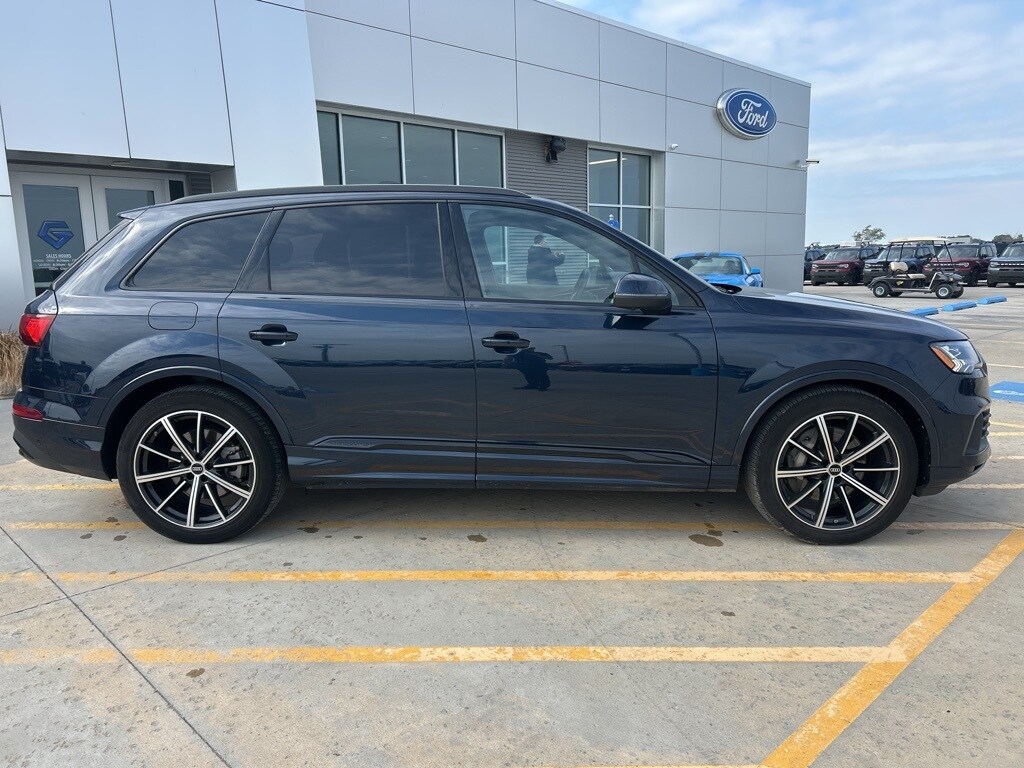 Blue Metallic 2023 Audi Q7 55 Prestige quattro quattro 8-Speed Automatic with Tiptronic 3.0L TFSI 4-Zone Automatic Climate Control, Adaptive Cruise Assist w/Lane Guidance, Audi Phone Box w/Wireless Charging, Bang & Olufsen Premium Sound System w/3D Sound, Black Optic Package, Comfort Adaptive Air Suspension, Contour/Ambient LED Interior Lighting Package, Convenience Package, Dual-Pane Acoustic Glass for Side Windows, Executive Package, Front Seats w/Ventilation, Head-Up Display, Heated Rear Seats, Heated Steering Wheel, Illuminated Door Sills, Intersection Assist, Laser Headlights Package, Power Soft-Closing Doors, Prestige Package, Rear Door/Side Windows & Tailgate Sunshades, Remote Park Assist Plus, Topview Camera System, Tow Hitch Receiver, Towing Package, Traffic Sign Recognition, Wheels: 20" 5-Spoke Turbine-Design, Wheels: 21" 10-Spoke-Star-Design Bi-Color Black.