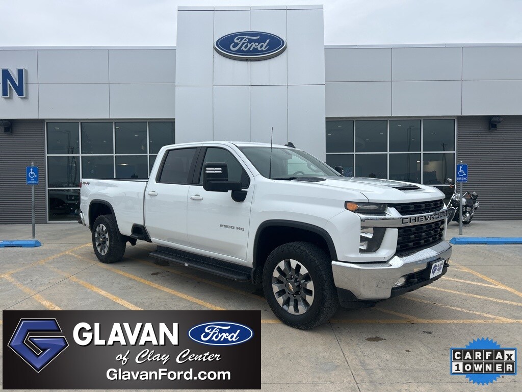 CARFAX One-Owner. Summit White 2021 Chevrolet Silverado 2500HD LT 4WD 6-Speed Automatic 6.6L V8 10-Way Power Driver Seat Adjuster w/Lumbar, 12-Volt Rear Auxiliary Power Outlet, 120-Volt Instrument Panel Power Outlet, 170 Amp Alternator, 2 USB Ports (1st Row), 2 USB Ports & 1 SD Card Reader (1st Row), 2-Speed Electronic Shift Transfer Case, 4-Way Manual Driver Seat Adjuster, 4.2" Diagonal Color Display DIC, 4G LTE Wi-Fi Hotspot Capable, Advanced Trailering System, Black Mirror Caps, Bluetooth® For Phone, Chevrolet Connected Access Capable, Chrome Front Grille, Cloth Rear Seat w/Storage Package, Color-Keyed Carpeting Floor Covering, Compass, Convenience Package, Convenience Package II, Deep-Tinted Glass, Dual Charge-Only USB Ports (2nd Row), Dual-Zone Automatic Climate Control, Electric Rear-Window Defogger, Electrical Lock Control Steering Column, Electronic Cruise Control w/Set & Resume Speed, Front LED Fog Lamps, Front Rubberized Vinyl Floor Mats, Halogen Reflector Headlamps, HD Radio, HD Rear Vision Camera, Heated Driver & Front Outboard Passenger Seating, Heated Steering Wheel, Heated Vertical Trailering Mirrors, Integrated Trailer Brake Controller, Keyless Open & Start, Leather Package, Leather-Wrapped Steering Wheel, Manual Tailgate Function w/EZ Lift, Manual Tilt & Telescoping Steering Column, Manual Tilt-Wheel Steering Column, OnStar & Chevrolet Connected Services Capable, Power Door Locks, Power Front Windows w/Driver Express Up/Down, Power Front Windows w/Passenger Express Down, Power Rear Windows w/Express Down, Power Sliding Rear Window w/Defogger, Preferred Equipment Group 1LT, Radio: Chevrolet Infotainment 3 Plus System, Rear 60/40 Folding Bench Seat (Folds Up), Rear Rubberized Vinyl Floor Mats, Rear Vision Camera, Remote Keyless Entry, Remote Vehicle Starter System, SiriusXM Radio, SiriusXM w/360L, Steering Wheel Audio Controls, Suspension Package, Unauthorized Entry Theft-Deterrent System, Universal Home Remote, Up-Level Rear Seat w/Storage Package, Urethane Steering Wheel, Wireless Phone Projection.