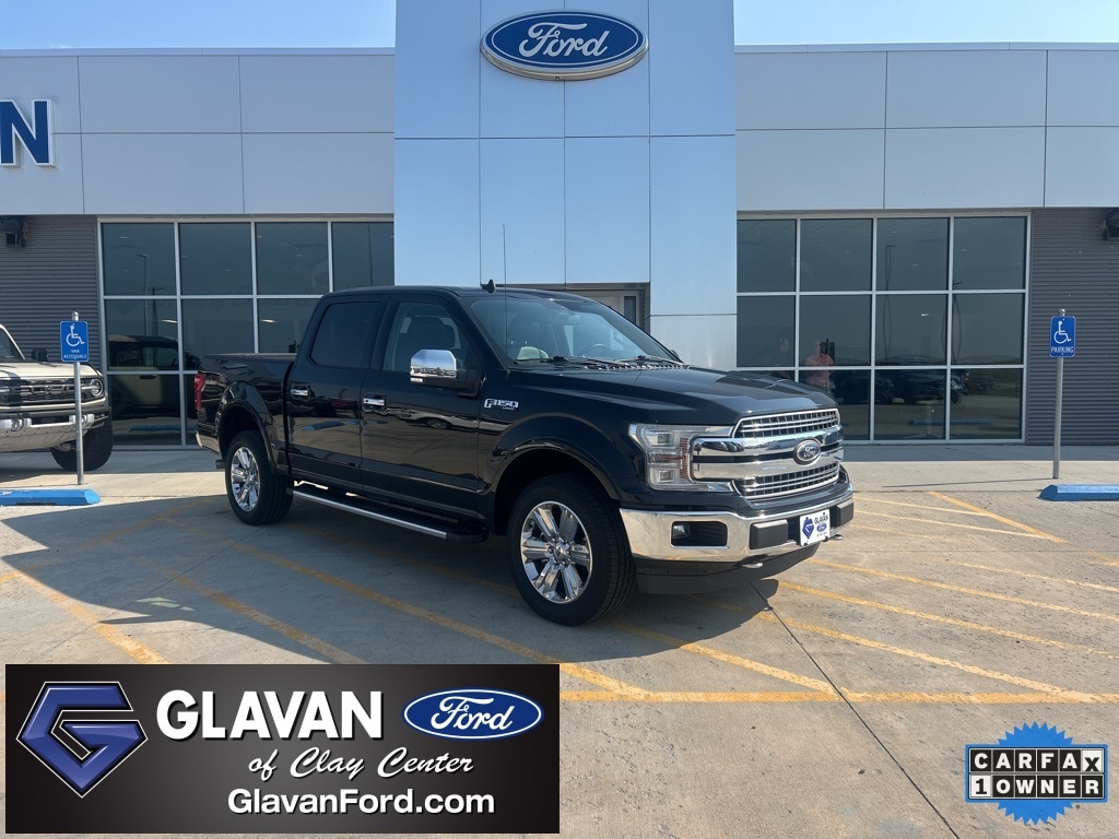 CARFAX One-Owner. Agate Black Metallic 2019 Ford F-150 Lariat 4WD 10-Speed Automatic 3.5L V6 EcoBoost 110V/400W Outlet, 2nd Row Heated Seats, BLIS Blind Spot Information System, Chrome 2-Bar Grille w/4 Minor Bars, Chrome Angular Step Bars, Chrome Door & Tailgate Handles w/Body-Color Bezel, Chrome Skull Caps on Exterior Mirrors, Class IV Trailer Hitch Receiver, Electronic Locking w/3.55 Axle Ratio, Engine Oil Cooler, Equipment Group 502A Luxury, Extended Range 36 Gallon Fuel Tank, Heated Steering Wheel, Integrated Trailer Brake Controller, Lariat Chrome Appearance Package, Leather-Trimmed Bucket Seats, LED Sideview Mirror Spotlights, Max Trailer Tow Package, Navigation System, Power Glass Sideview Mirr w/Chrome Skull Caps, Power Tilt/Telescoping Steering Column w/Memory, Pro Trailer Backup Assist, Quad Beam LED Headlamps & LED Taillamps/Fog Lamps, Radio: B&O Sound System by Bang & Olufsen, Rain-Sensing Wipers, Remote Start System w/Remote Tailgate Release, Reverse Sensing System, Single-Tip Chrome Exhaust, Universal Garage Door Opener, Upgraded Front Stabilizer Bar, Wheels: 18" Chrome-Like PVD, Windshield Wiper De-Icer.