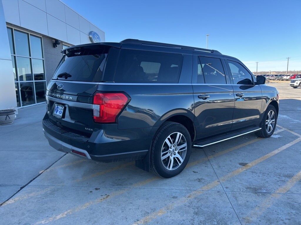CARFAX One-Owner. Stone Blue Metallic 2022 Ford Expedition Max XLT 4WD 10-Speed Automatic EcoBoost 3.5L V6 GTDi DOHC 24V Twin Turbocharged 110V/150W AC Power Outlet, 2nd Row Power-Folding Captain's Chairs, 3rd Row Vinyl Power-Folding Head Restraints, 4-Door Intelligent Access (Lock/Unlock), Accent Color Painted Rear Bumper, ActiveX-Trimmed 1st & 2nd Row Seats, Advanced Security Pack, Ambient Lighting, Bright Chrome Plated Accent Platform Running Boards, Equipment Group 202A High Package, Heated Steering Wheel, Heated/Ventilated Front Seats, Intersection Assist, LED Fog Lamps w/Accent Color Painted Bezel, LED Reflector Headlamps, Navigation system: Connected Navigation, Power Liftgate, Power Tilt/Telescopic Steering Wheel w/Memory, Power-Adjustable Pedals w/Memory, Power-Folding Sideview Mirrors w/Autofold, Remote Start, SecuriCode Keyless Entry Keypad, Sideview Mirrors w/Turn Signal Indicators, Special Edition Package, Vinyl Center Console, Wheels: 20" Bright Machined Aluminum, Wireless Charging Pad.